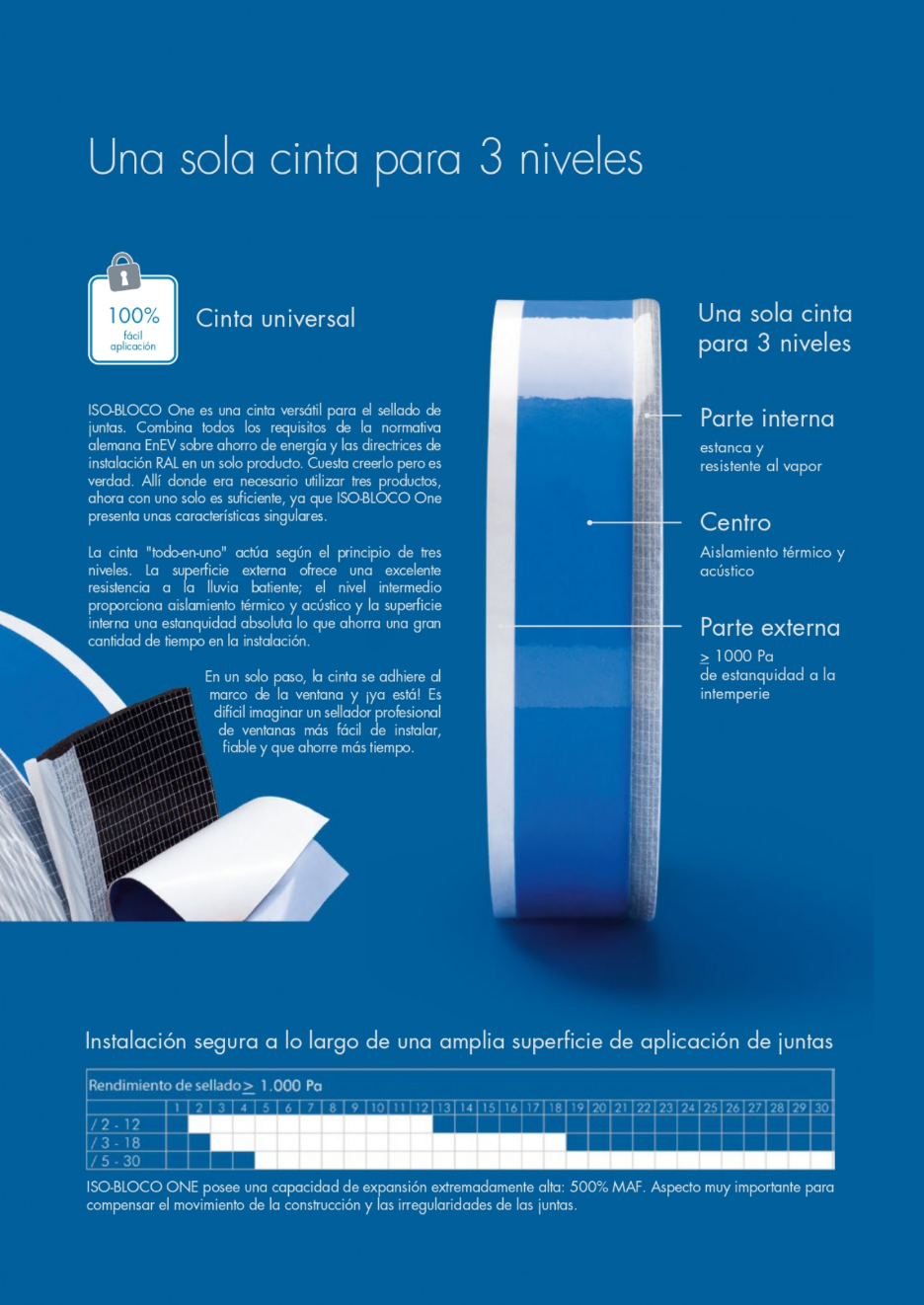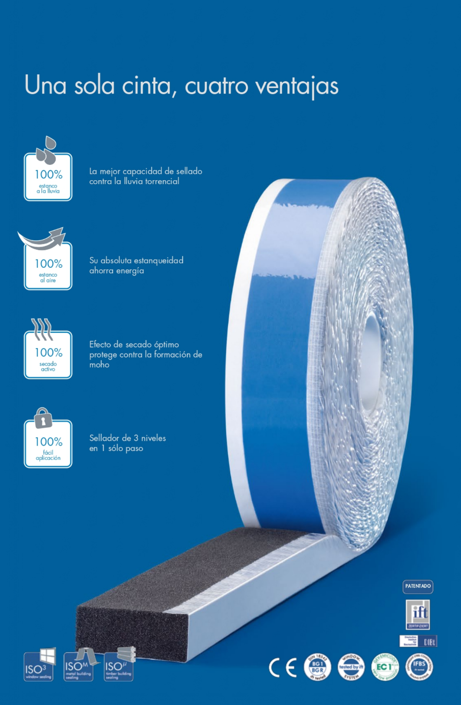 Esta cinta inteligente de sellado de juntas funciona principalmente a 3 niveles. Externamente provee, con más de 1.000 Pa, alta resistencia a la lluvia, en el área central proporciona aislamiento térmico y acústico e internamente es absolutamente estanca y funciona como barrera de vapor. Además, tiene un óptimo gradiente de difusión de vapor desde el interior hacia el exterior (50:1) mejorando la transmisión externa de humedad, permitiendo que las juntas permanezcan secas.