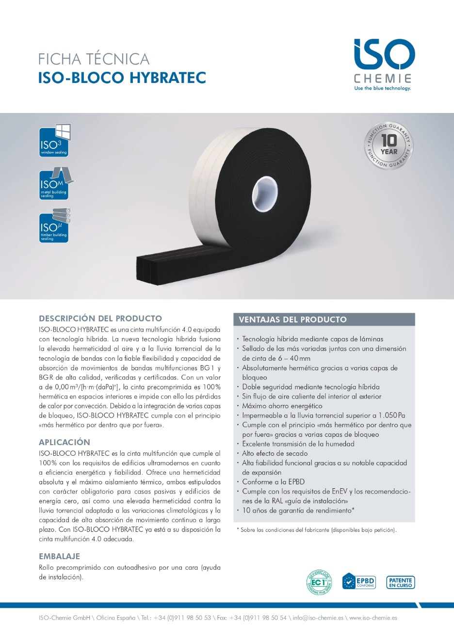 Iso-Bloco One Hybratec - CINTAS EXPANSIVAS AUTOCOMPRIMIDAS, AUTOEXPANSIVAS Y MULTIFUNCIÓN ISO-BLOCO ONE, BANDA EXPANSIVA PASSIVHAUS