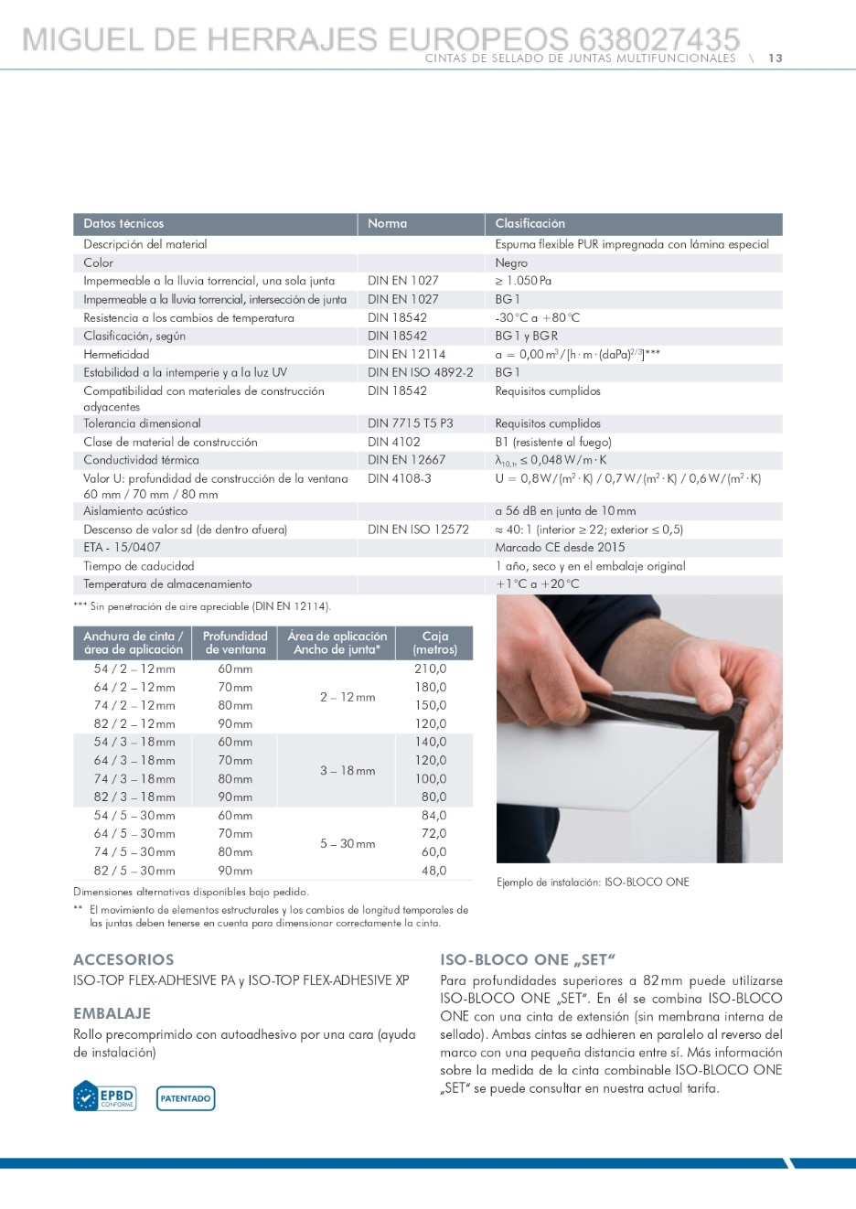 Iso-Bloco One - CINTAS EXPANSIVAS AUTOCOMPRIMIDAS, AUTOEXPANSIVAS Y MULTIFUNCIÓN ISO-BLOCO ONE, BANDA EXPANSIVA PASSIVHAUS